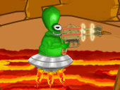 You are an alien and your mission is to shoot hostile robots and collect diamonds to upgrade your weapons.