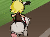 Ride your pup as long as you can, collect beer and fruits.