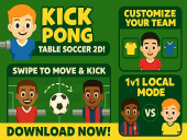 Jump into Kick Pong Table Soccer and explore goal driven sports gameplay focused on skill growth. Access Kick Pong Table Soccer directly in your browser on G55.CO. Focus on pressure handling while taking on multiplayer matches. Consistent mechanics make it easy to return and improve.